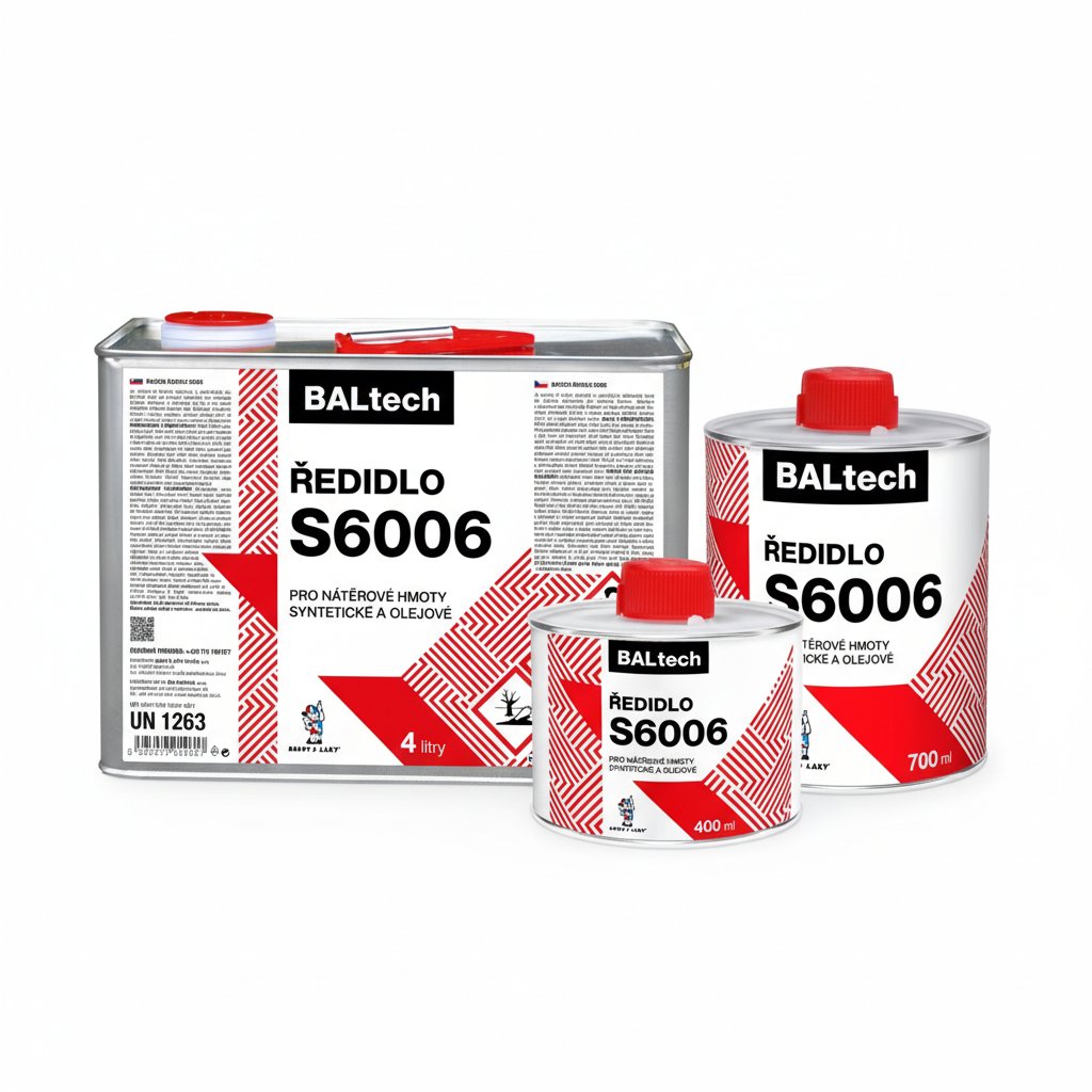 Pouze pro štětec: S6006 je určeno pro štětec/váleček. Pro stříkání pistolí použijte ředidlo S6001 (které těká rychleji). Pokud byste dali S6006 do stříkací pistole, barva by na svislých plochách stékala (tvořila by záclony).
