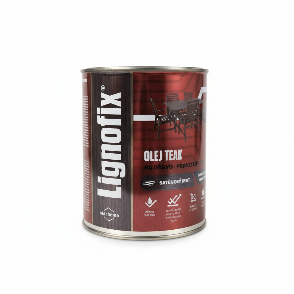 Přírodní péče pro váš zahradní nábytek. LIGNOFIX OLEJ je bezbarvý přírodní olej speciálně vyvinutý pro ošetření teakového dřeva a exotických dřevin. Chrání před vodou, omezuje praskání a zdůrazňuje přirozenou kresbu dřeva. Nevytváří lakový film, ale vsakuje se do hloubky.