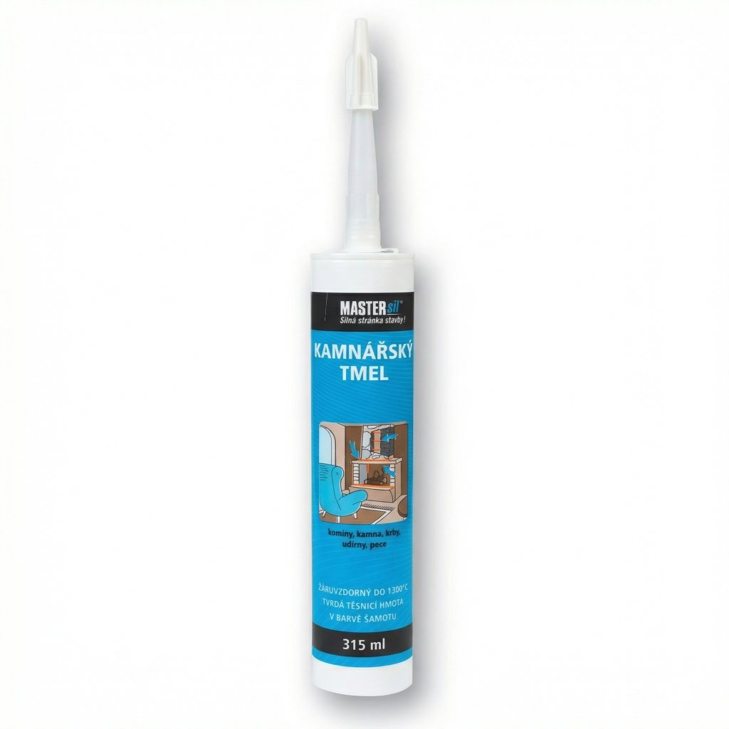 MASTERSIL Kamnářský tmel (315 ml) je speciální silikátový tmel černé barvy s extrémní tepelnou odolností až do 1200 °C. Je určen pro tmelení prasklin a spojů v kamnech, krbech, kotlích a komínových systémech. Po vytvrzení je zcela nepružný (tvrdý jako kámen), přetíratelný a odolný vůči přímému plameni. Ideální pro opravy šamotu a těsnění kouřovodů.
