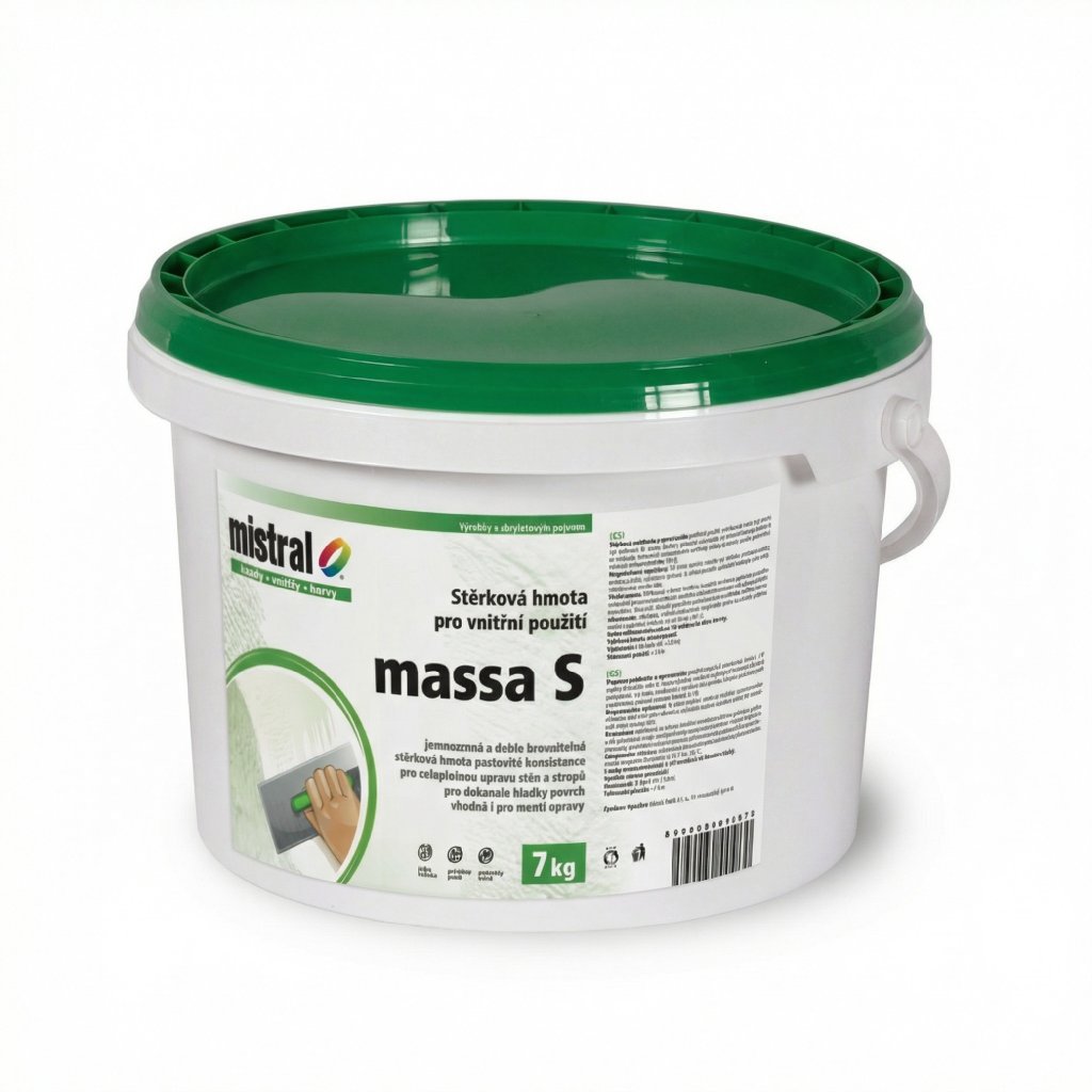 Pokud vyžadujete povrchy, které jsou hladké jako sklo, Mistral Massa S je řešením pro náročné aplikace. Jedná se o jemnou pastovitou hmotu, která slouží jako poslední vrstva před malováním (tzv. finiš). Její hlavní předností je lehká zpracovatelnost. Na stěně se netrhá, nedělá "kocoury" a po zaschnutí jde velmi snadno brousit (ručně i strojně), aniž by zanašela brusný papír. Díky své vysoké bělosti navíc sjednocuje podklad, takže při následném malování často ušetříte jednu vrstvu barvy. Je vhodná i pro opravy vlasových trhlin a drobných nerovností.